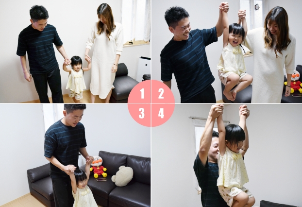 - お子さんの手をゆっくり引きながらお子さんの体を前に倒す