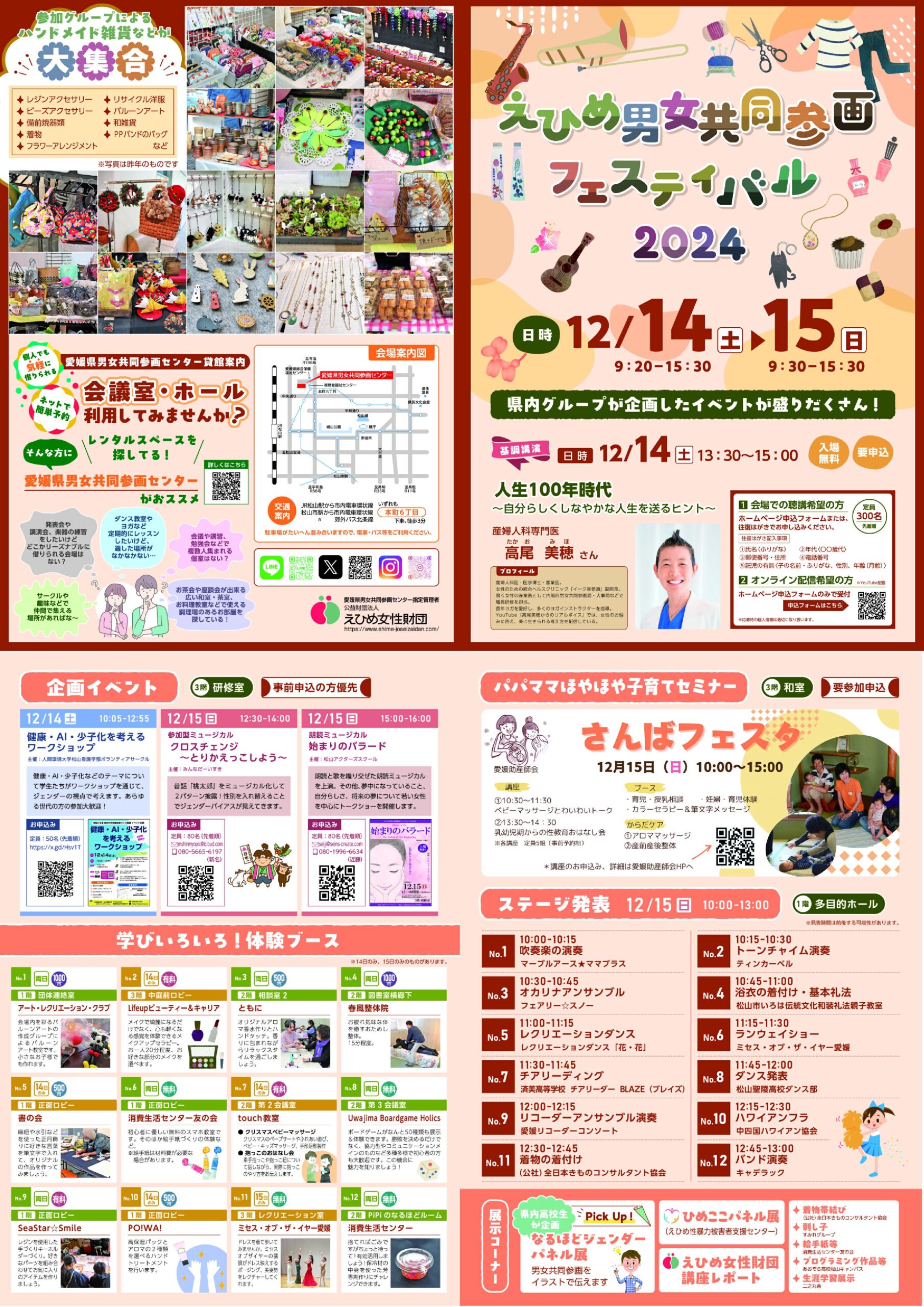 産婦人科専門医・医学博士・婦人科スポーツドクターとして活躍されている高尾 美穂(たかお みほ)さんをお迎えし、基調講演をしていただきます。また、えひめ女性財団の自主企画イベントや県内各グループによるハンドメイド雑貨などの販売、体験コーナー、展示、高校生によるダンス等のステージ発表、企画イベントなど内容盛りだくさんで開催いたします!