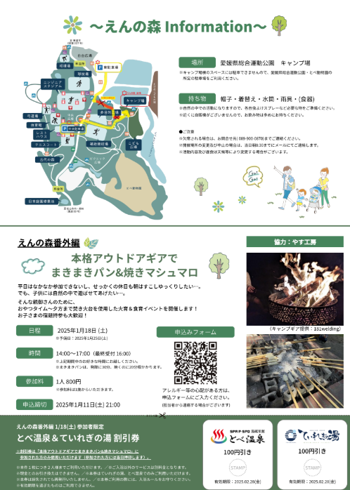 1/18(土)開催!『えんの森 番外編~本格アウトドアギアで”まきまきパン&焼きマシュマロ”~』