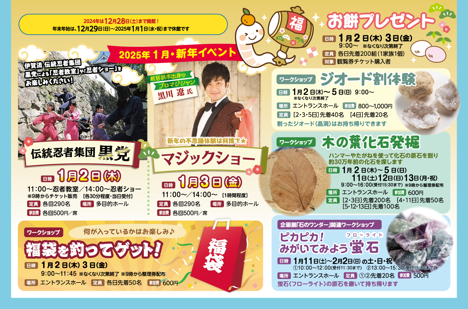 愛媛県総合科学博物館では、2025年1月2日(木)から冬季イベント「科博のお正月」を開催します。