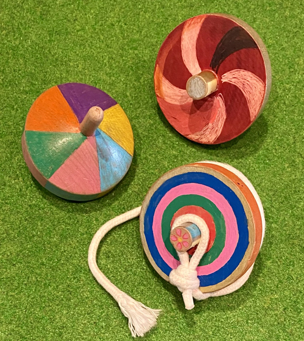 木でできたコマにペンで自由にお絵描きをしてオリジナルのコマをつくれます。