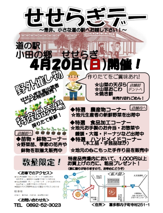 積善山「三千本桜でおもてなし」を目的に開催され、各種団体バザーや地元特産品市場、レモンティーや柑橘のお接待、桜ウォーク等が行われます。期間中は夜桜のライトアップも行われ、幻想的な桜も楽しめます。