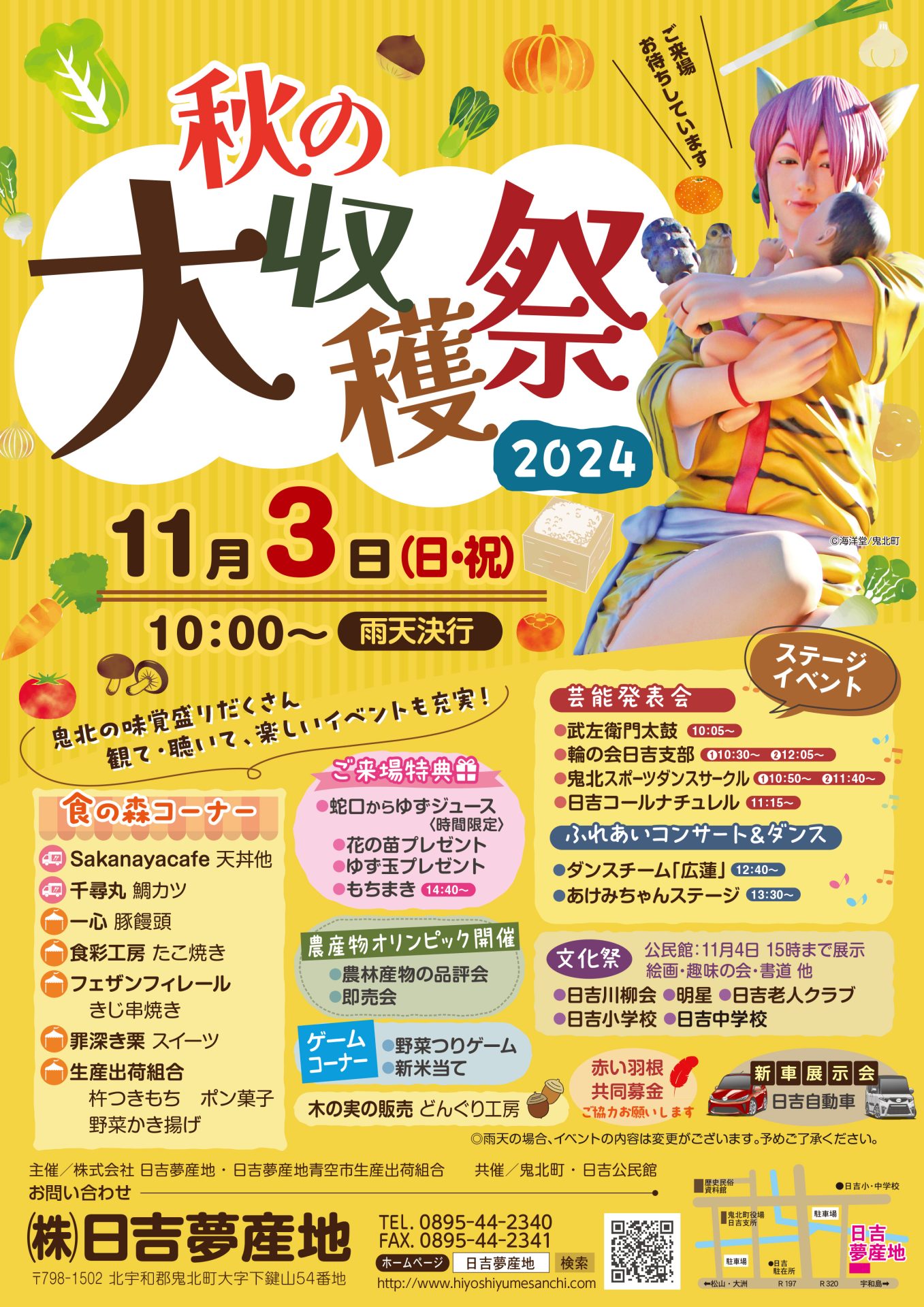 11月3日(日・祝)毎年恒例の「秋の大収穫まつり」を夢産地にて開催いたします!
