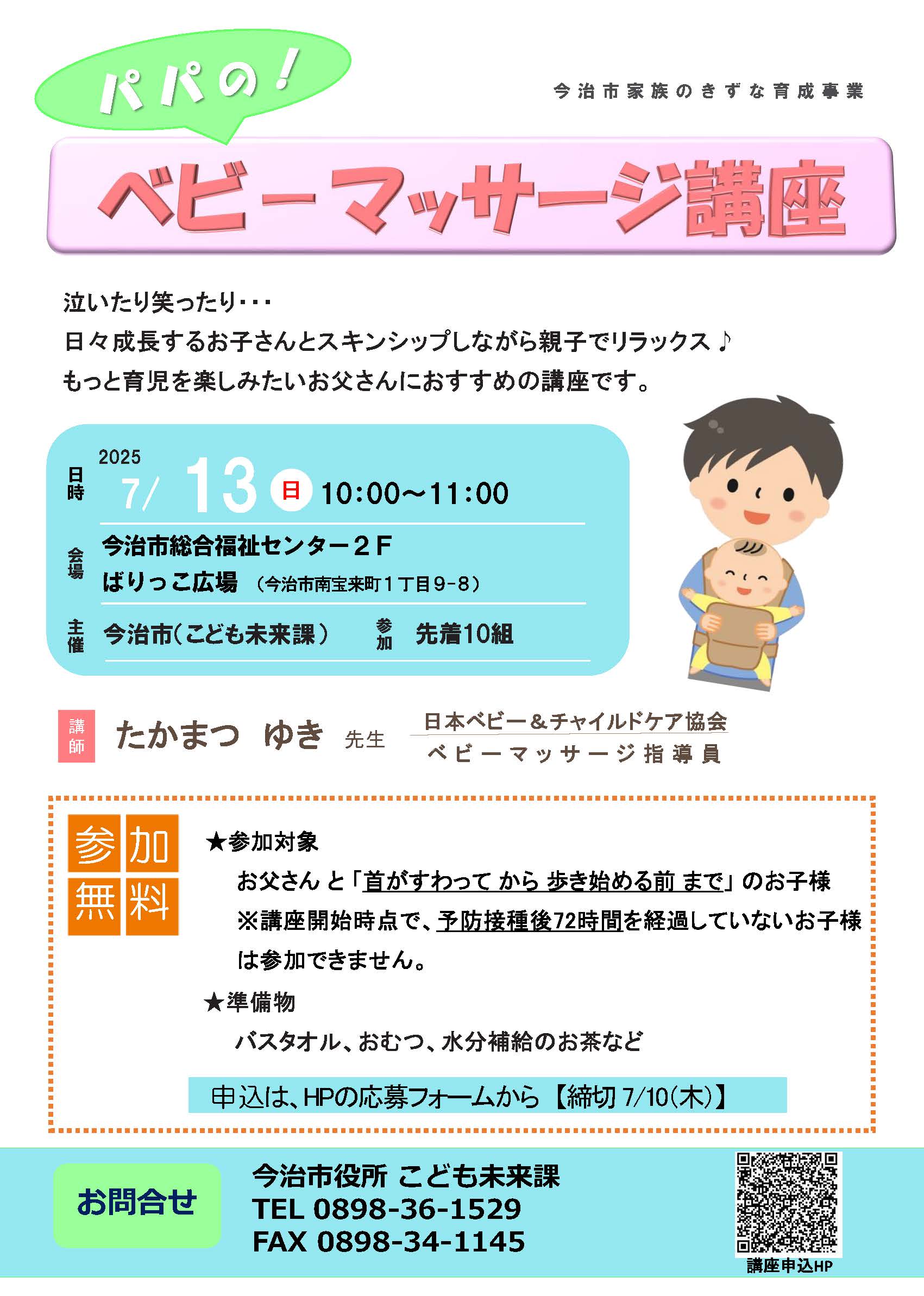 - 愛媛県と今治市の事業で、第2子以降の子どもを養育している保護者に、『今治市愛顔っ子(えがおっこ)応援券』50,000円分(1,000円券×50枚綴り)を交付するものです。県内企業が生産する乳児用紙おむつ対象製品を市内登録店舗で購入する際に利用できます。(転入の方も対象)