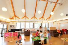 ハッピーハウス「Happy House」は久万保育園、NIKONIKO館(児童館)の隣にあります。「可愛くておしゃれで過ごしやすく、どなたでも気軽に集える場所」をテーマにしたオレンジの屋根が目印の建物です。 ホールには、良質な木のおもちゃや絵本がたくさん揃っています。赤ちゃんコーナーもあり、小さな子でも安心して過ごすことができます。また、ゲストルームを利用して飲食もできます。
