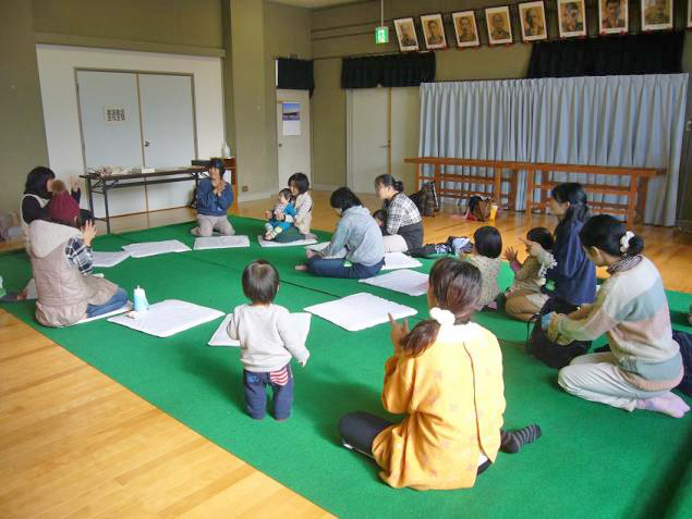 オモトダチヤーイ活動は保健師さんのお話と育児相談、保育士さんの指導でおやこ遊び他しています。
