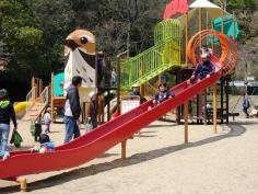 タキノミヤコウエン利用者の声「自然がいっぱいの公園です。池の周りを散歩できたり、大型遊具では身体をいっぱい使って遊べます。駐車場から距離があるのでベビーカーがあると便利です。」