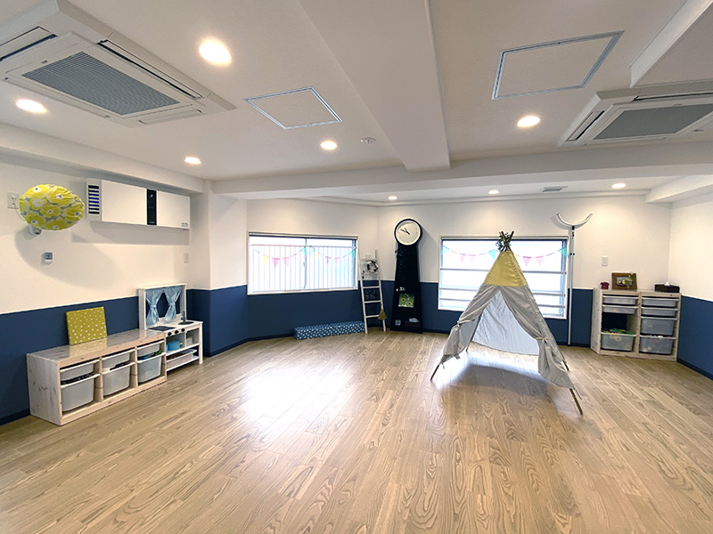 木の周りにはスツールと飾り棚があり、サイドのトンネルをくぐると、中には隠れ家のような空間がある大型室内遊具は、子ども達が集まって楽しい時を過ごせる工夫がいっぱい。