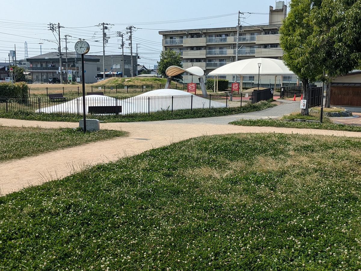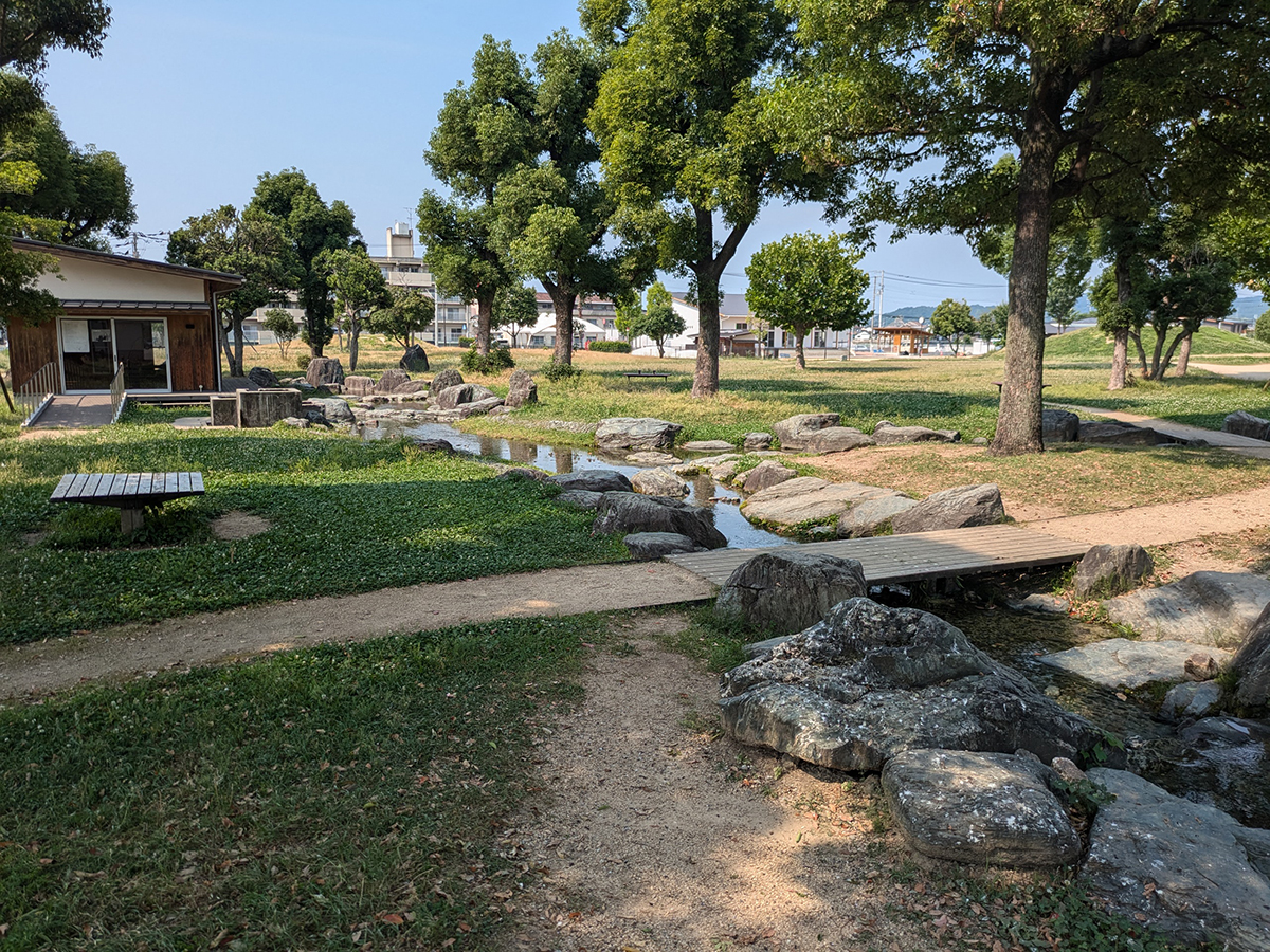 サイジョウシミンコウエン子どもたちに大人気のふわふわドームで遊べる公園です。市街地にあるので、観光や買い物のついでにどこからでも簡単にアクセスできます。「水の都」西条市の特徴を活かしたせせらぎの空間やうちぬきの水汲み場で日頃の疲れを癒してください。また、木々に囲まれた屋根付きのデッキに座りながら、広場をかけ回るお子さんを見守ることができます。
