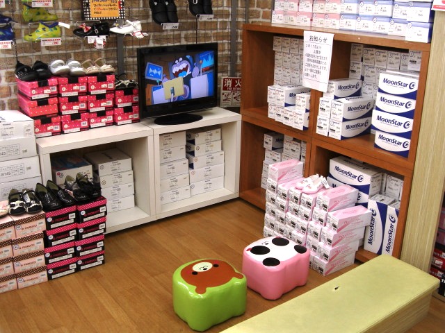 特にキッズスペースはございませんが、子ども靴売り場にDVDあり。