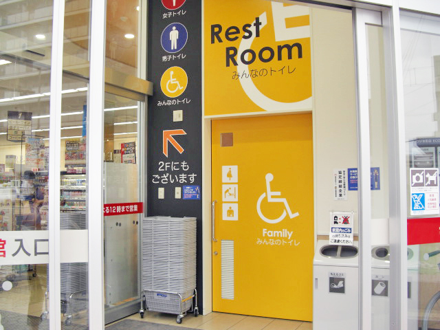 ミルクのお湯使いやすいトイレ(親子用・多目的・子ども専用)ベビーカー/ベビーカート貸出思いやり駐車場/乳幼児連れ優先駐車場