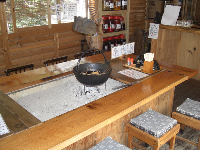 「いろり小屋」ではあまご料理やそうめん流し、いもたきなど四季折々の食事が楽しめる。
