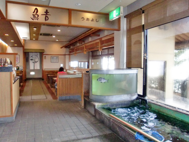 店内からは穏やかな瀬戸内の海や島々を一望でき、地元でとれた魚が泳ぐいけすがあります。お子様連れのお客様に一番人気のメニューは「鯛釜うどんセット(¥1.050)」です。当店自慢の天然鯛を使った釜めしに、太刀魚の天ぷら・かけうどんがついたセットです。お子様連れでもご利用しやすいよう、座敷、個室(要予約)もありますので、お気軽にお越しください。