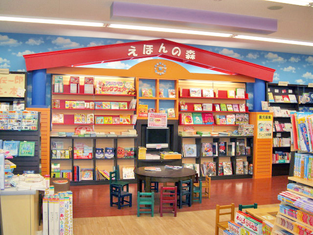 東予地区で最大級の児童書コーナー「えほんのもり」では、たくさんの絵本に囲まれてご家族で楽しくお買物ができます。