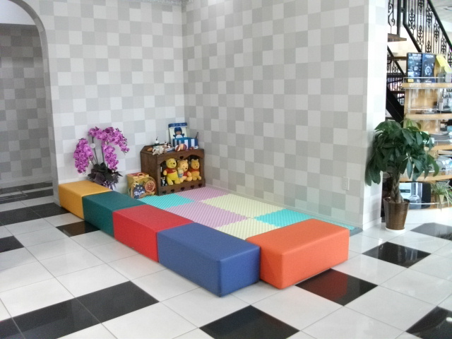 サキヤマカーサービス当店では、お子様連れのお客様が安心してご来店いただけますよう、キッズコーナーや、トイレ内には、オムツ交換台・ベビーキープを設けております。フリードリンクのご提供もさせて頂いております。お気軽にご来店ください。