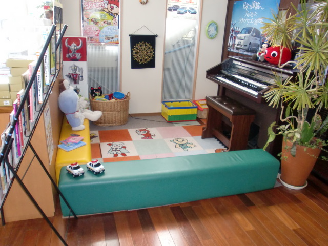 ホンダカーズマツヤマミナミ トベテン当店はキッズスペースがあり、女性スタッフがお子様の対応を致しますので、お子様連れでも安心して商談できます。チャイルドシートの指導等、資格を持ったスタッフもおります。お車の整備・商談の方にはカフェ無料サービス券をお渡ししていますので、2階のカフェでおくつろぎください。カフェにはお子様向けメニューもありますので、是非お気軽にお立ち寄りください。