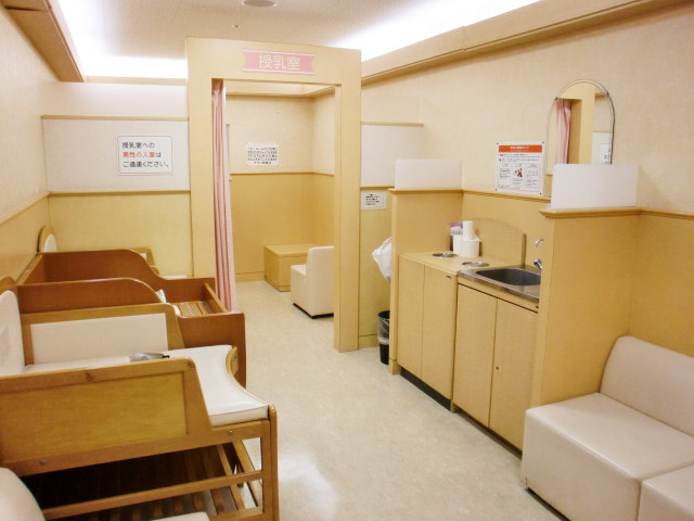 ○ベビールームにオムツ交換コーナーと授乳スペースあり。