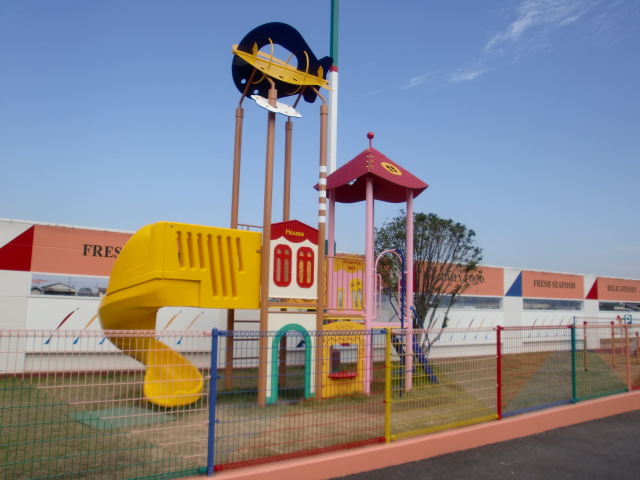 マルナカ サイジョウテン当店では駐車場内にブランコなどで遊べるちびっこ広場を設置しております。毎日のお買い物が少しでも楽しくなれば…、との思いから、お子様には元気に遊べる遊び場を、お母様にはちょっと一休み&情報交換の場をご提供できればと考えております。ご来店の際はぜひご利用ください。当店は頑張るお母さんを応援します!