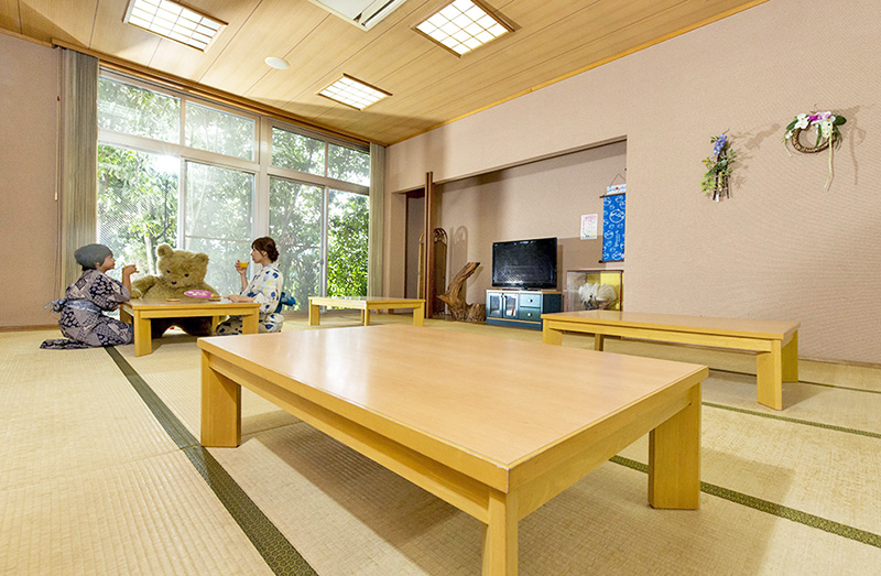 ○大浴場は脱衣所に交換台あり、家族風呂は和室でオムツ交換可。