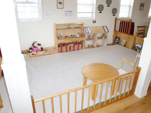 ダイニング カフェ ポーリー!「子育て中だって、たまにはおしゃれなカフェタイムを楽しみたい!」そんな声に応えて、2階はキッズルーム完備のヤングママ用スペースとしました。スペイシャスなトイレには、おむつ替えベッドも備えています。幼児連れのお客様にもゆっくり楽しんでいただけます。