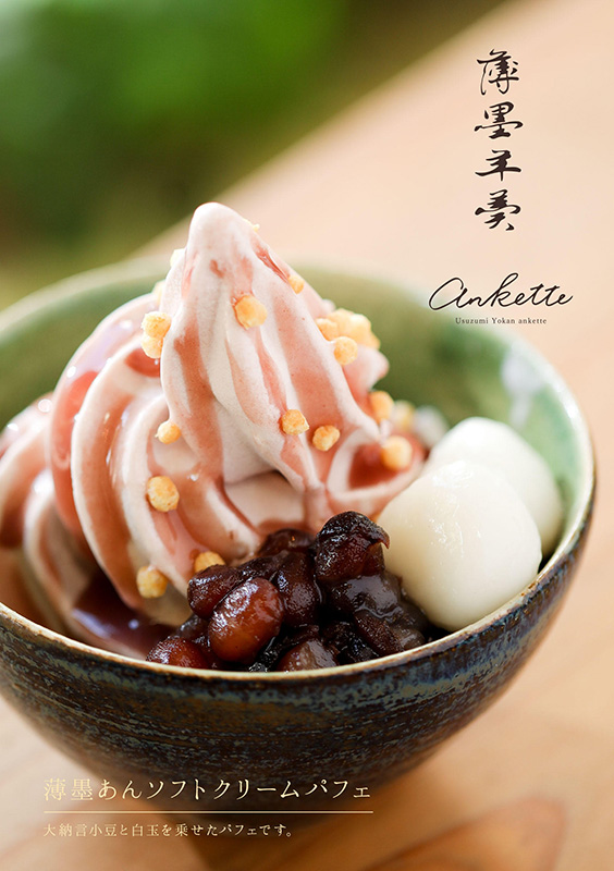 ウスズミヨウカンアンケッテフジウワジマテン銘菓薄墨羊羹の定番商品をはじめ、薄墨羊羹Ankette限定のどら焼きや、餡ソフトクリームを取り揃えております。